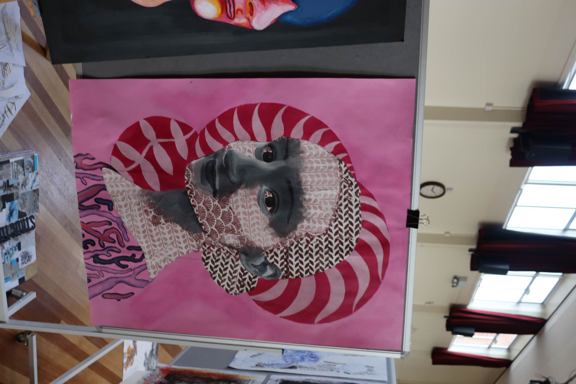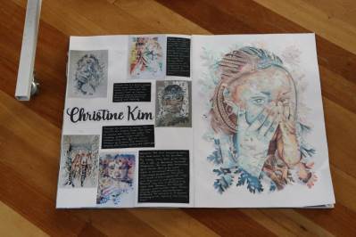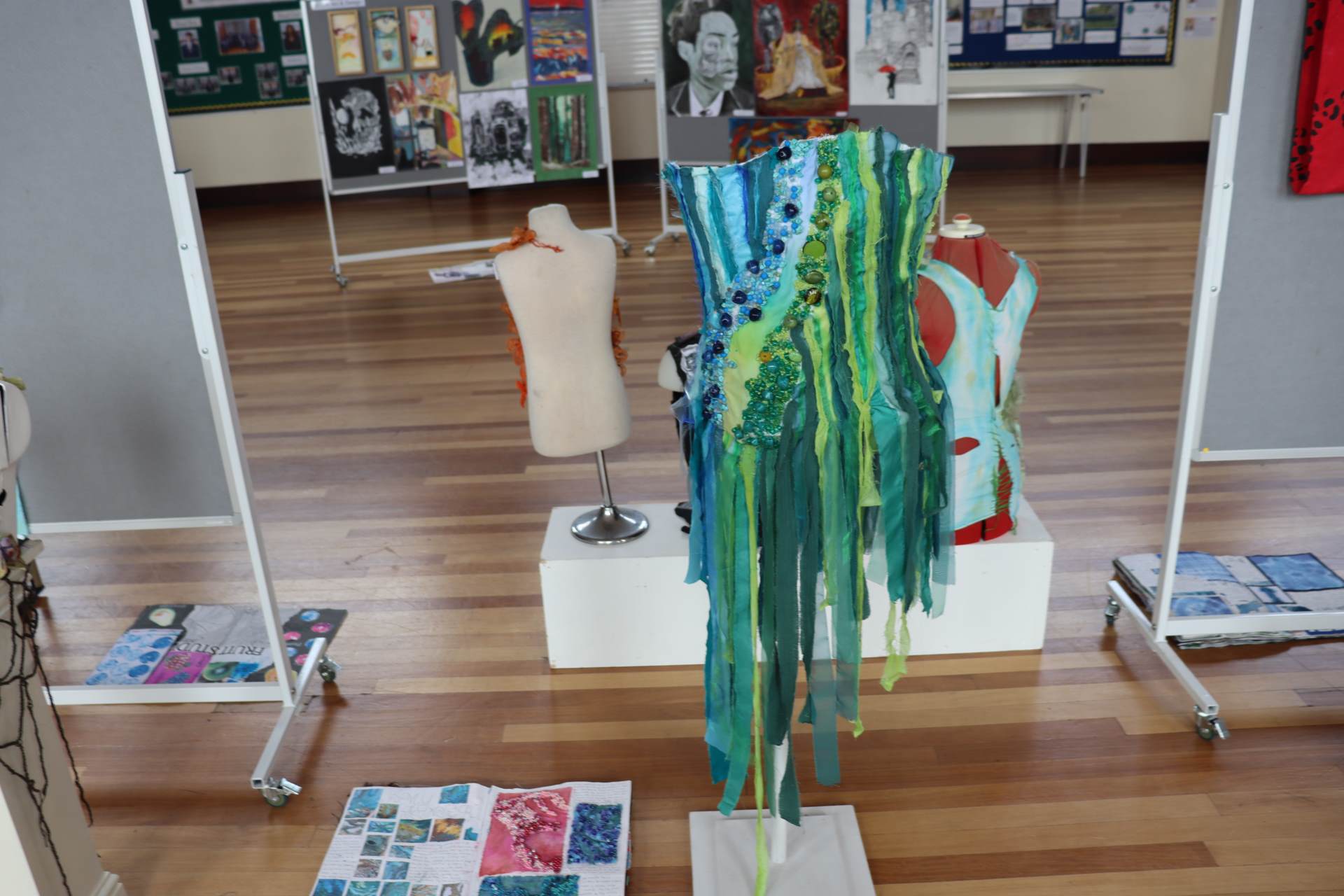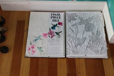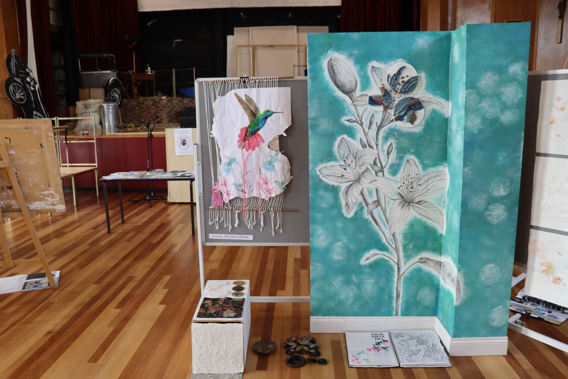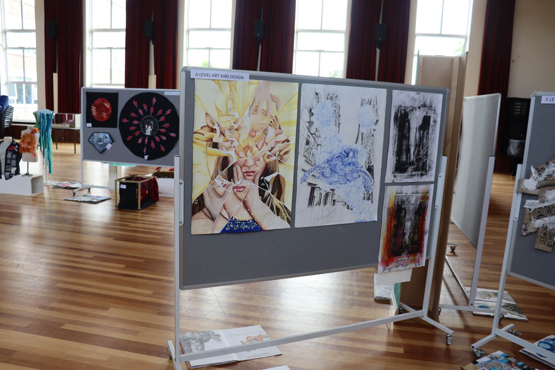 The exhibition covers a range of creative disciplines from drawing and painting to fabric dyeing, sewing, 3D and print etc. The work displayed demonstrates the student’s ideas and concepts in relation to the themes they were exploring. The GCSE Art and Textiles themes were, Natural worlds and Apart and or Together. The final exam title for GCSE was Power. The BTEC students themes included briefs based on Creative Landscapes, Introspection and their final exam on Spirituality. A Level students choose their own theme for their personal line of investigation so a wider range of subject matter is evident throughout their work.