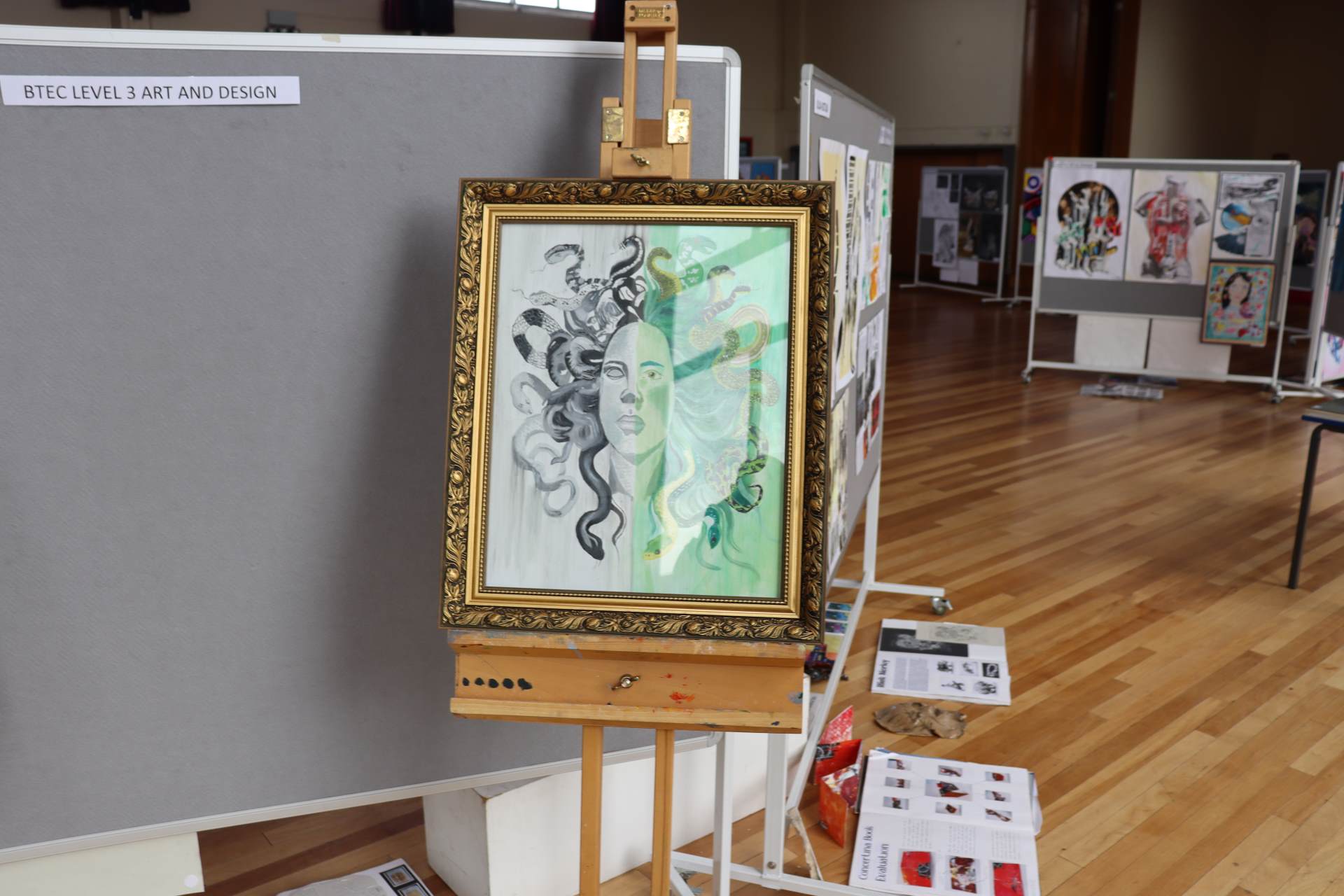 This year once again the Art department proudly displayed the students work in our 2025 Art exhibition. We were once again delighted to be able to invite students, parents, governors and staff to the exhibition. The exhibition displayed the hard work and achievement of GCSE Art and Textiles, BTEC and A level Art student’s work. As usual the feedback received from members of our school community, family and friends was full of praise about the work and the effort the students had put in to fine tuning their skills over their two year course. This praise was well deserved.